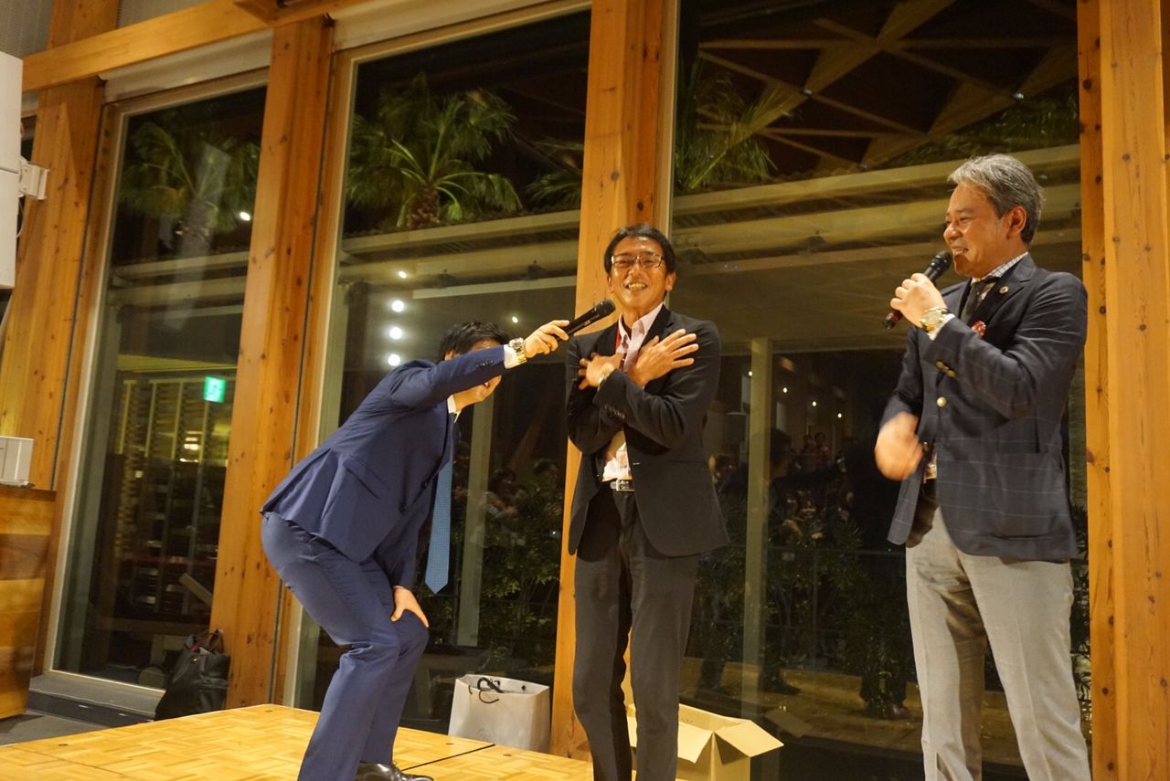 松本常務取締役より営業連絡のお話を頂いた後、初代BC I様、二代目BC T様、N様にご登壇頂きご挨拶頂きました